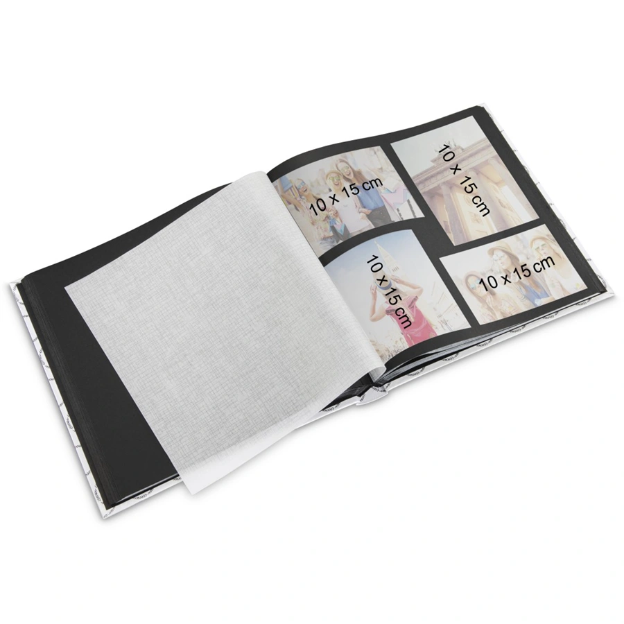 - čierne vnútorné listy poskytujú priestor pre vaše príbehy a spomienky (fotografie, kresby, texty, pohľadnice, vstupenky …)