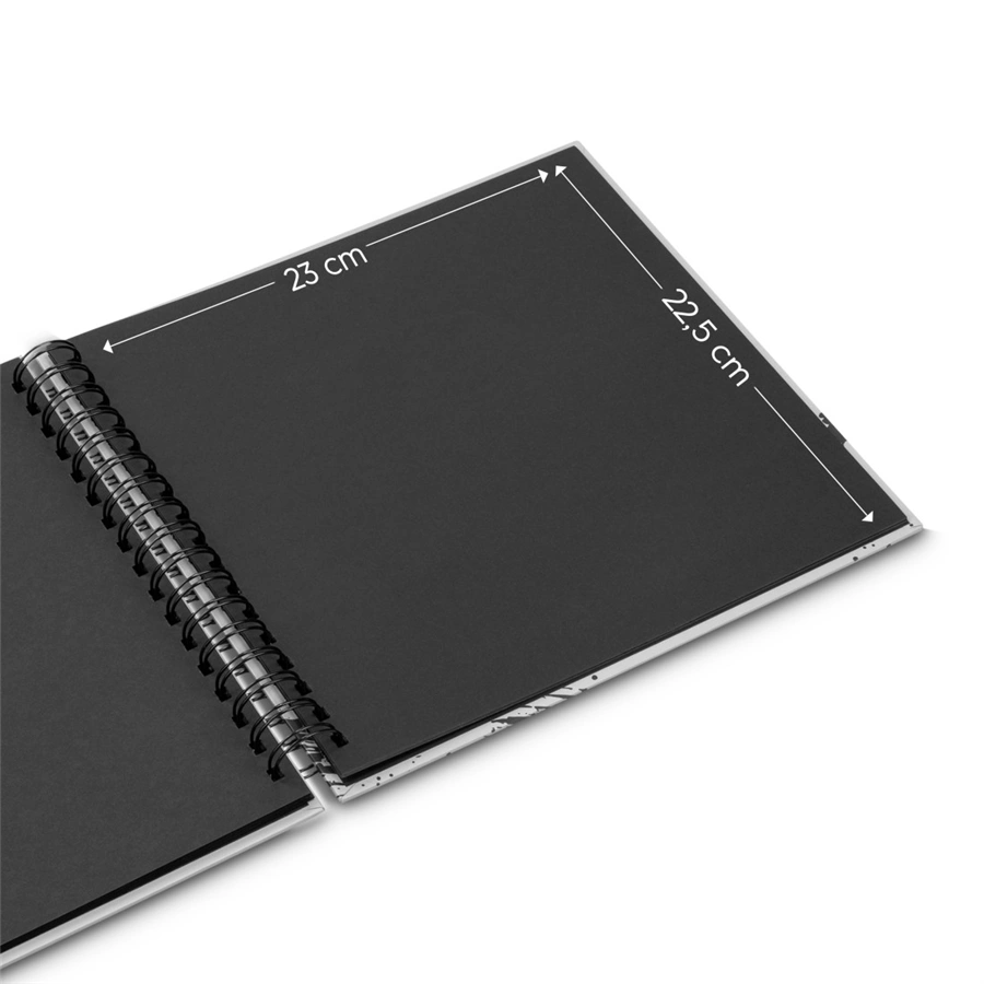 - čierne vnútorné listy poskytujú priestor pre vaše príbehy a spomienky (fotografie, kresby, texty, pohľadnice, vstupenky …)