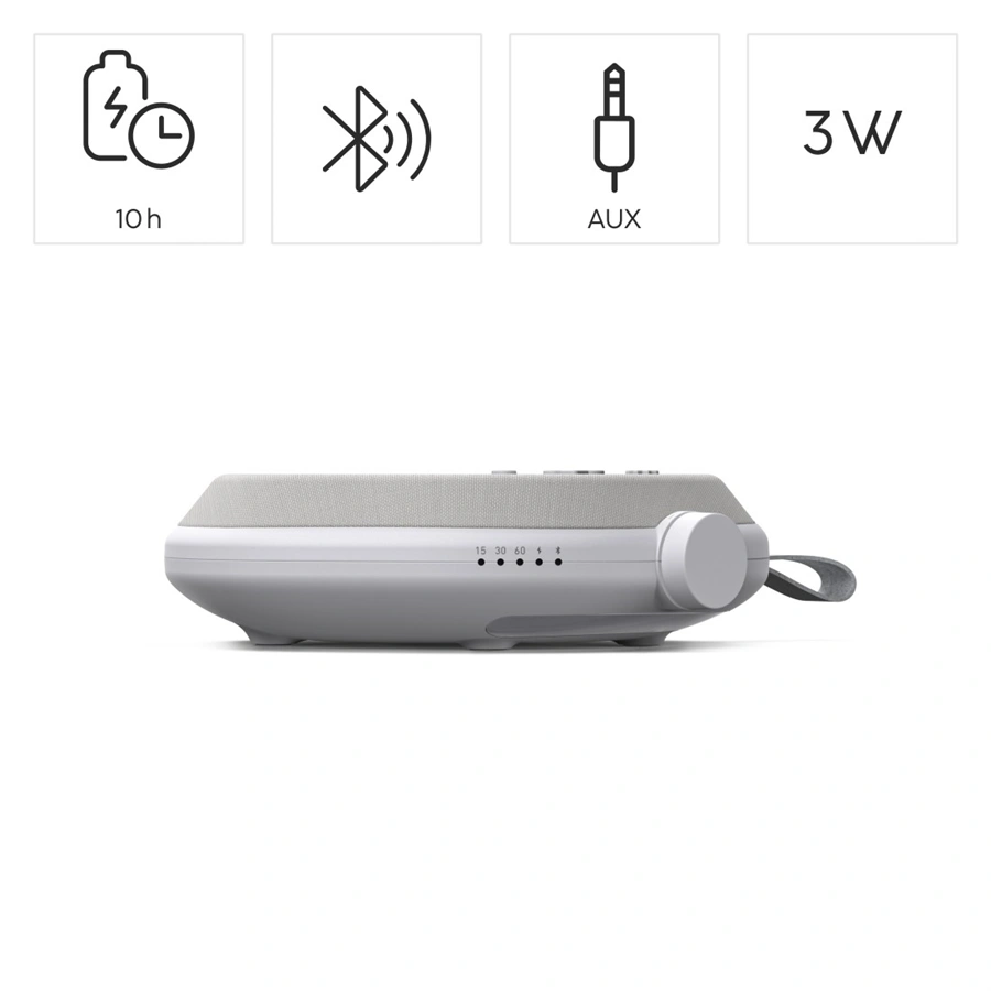 - jasný a vyvážený zvuk s výkonom 3 W pre mäkké zvuky, upokojujúce zvuky prírody alebo tiché podcasty cez reproduktor priamo na vankúši