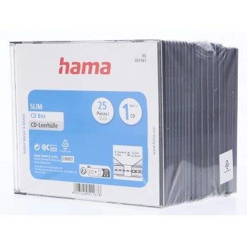 Hama CD Slim Box, obal na 1 cd/dvd, priehľadný/čierny, balenie 25 ks (cena za balenie)