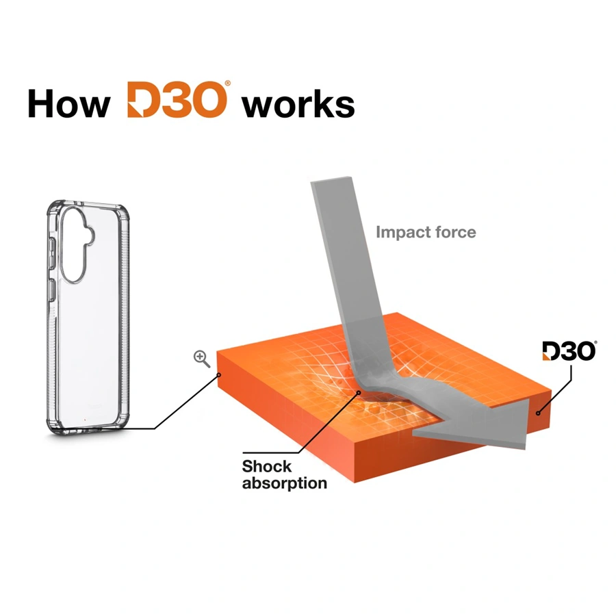 D3O® je unikátny inovatívny materiál, ktorý je takmer nezničiteľný. Tento materiál zaručí aj pri minimálnej hrúbke krytu maximálnu ochranu zariadenia pri nárazoch, pádoch a úderoch a to dokonca aj pri páde z výšky 3,5 m. Zároveň ale vôbec neovplyvní používanie a ovládanie zariadenia. Tvrdosť 4H zaručuje mimoriadnu odolnosť voči poškriabaniu. Vďaka použitým materiálom kryt ostane navždy číry a nikdy nezažltne, ako sa to stáva pri bežných krytoch.