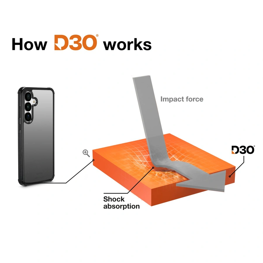 D3O® je unikátny inovatívny materiál, ktorý je takmer nezničiteľný. Tento materiál zaručí aj pri minimálnej hrúbke krytu maximálnu ochranu zariadenia pri nárazoch, pádoch a úderoch a to dokonca aj pri páde z výšky 3,5 m. Zároveň ale vôbec neovplyvní používanie a ovládanie zariadenia. Tvrdosť 4H zaručuje mimoriadnu odolnosť voči poškriabaniu.