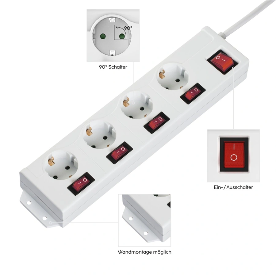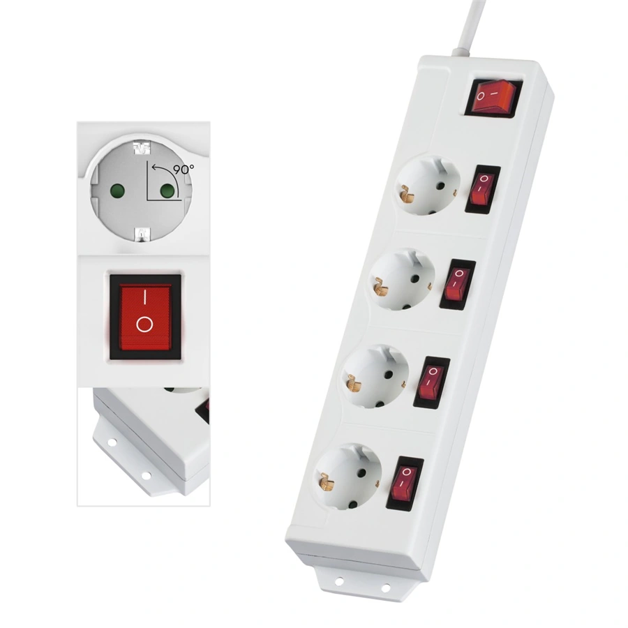 - 4-zásuvková predlžovací prívod so samostatným vypínačom každej zásuvky