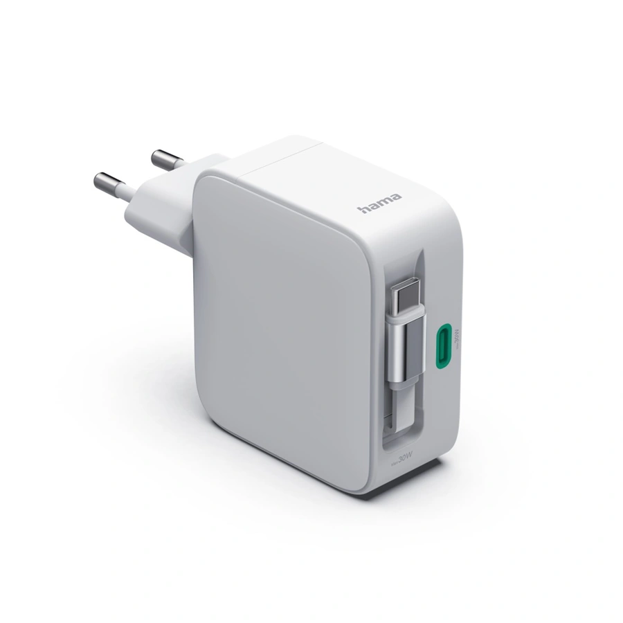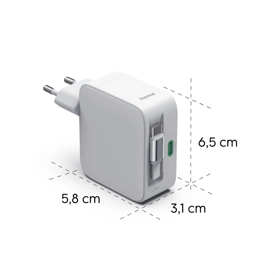 - kábel s USB-C vidlicou s automatickým navíjaním integrovaný v nabíjačke; neprekáža a je vždy pripravený na použitie