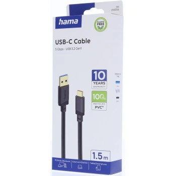 Hama USB A-C kábel 1,5 m, USB 3.2 Gen1 5 Gb/s, čierny