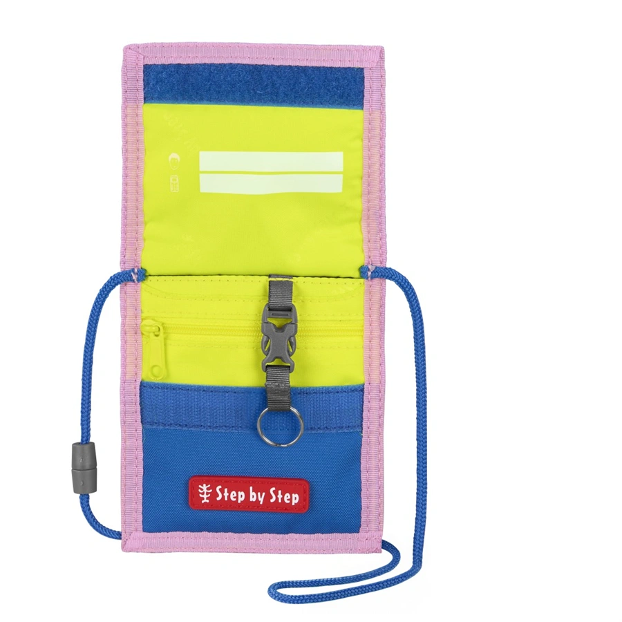 VybavenieOdmímateľný krúžok na kľúče | Priečinok na mince so zatváraním na zips | Priehľadný priečinok na doklad (cestovný lístok, študentský preukaz atď.) | Priestor na štítok s menom/adresou | Šnúrka na krk s bezpečnostným zatváraním