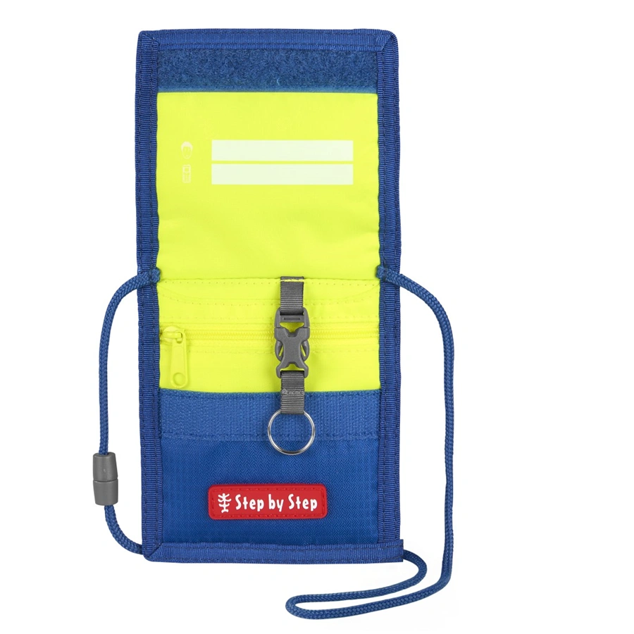 VybavenieOdmímateľný krúžok na kľúče | Priečinok na mince so zatváraním na zips | Priehľadný priečinok na doklad (cestovný lístok, študentský preukaz atď.) | Priestor na štítok s menom/adresou | Šnúrka na krk s bezpečnostným zatváraním