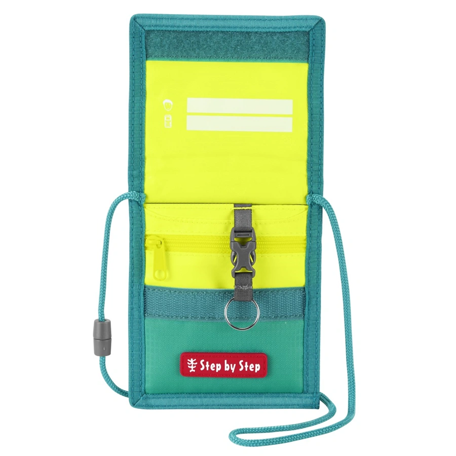 VybavenieOdmímateľný krúžok na kľúče | Priečinok na mince so zatváraním na zips | Priehľadný priečinok na doklad (cestovný lístok, študentský preukaz atď.) | Priestor na štítok s menom/adresou | Šnúrka na krk s bezpečnostným zatváraním