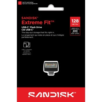 SanDisk Extreme Fit USB-C Flash Drive USB 128 GB Flashdrives 400 MB/s, čierna