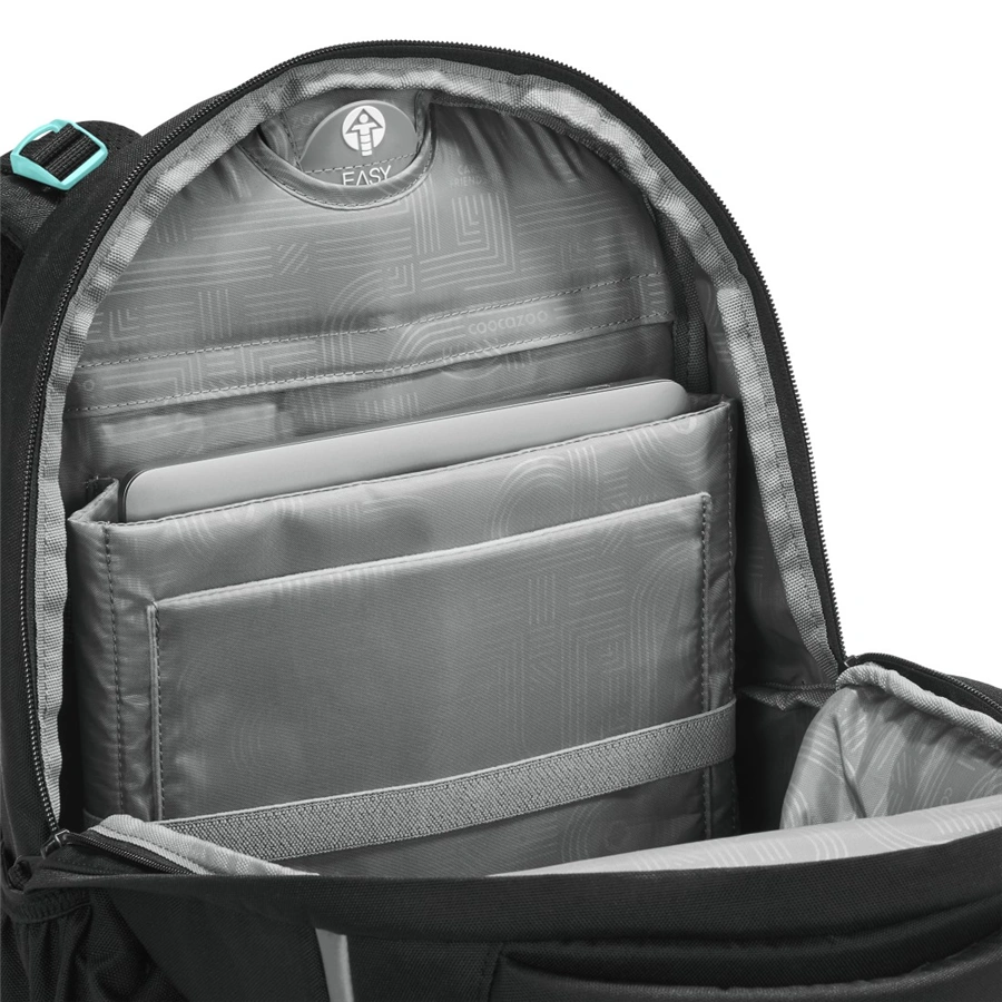 - veľký hlavný priečinok s polstrovanými priehradkami pre tablet a notebook, priehradky tlmia nárazy vďaka zavesenému prevedeniu (nedotýkajú sa dna ruksaku)