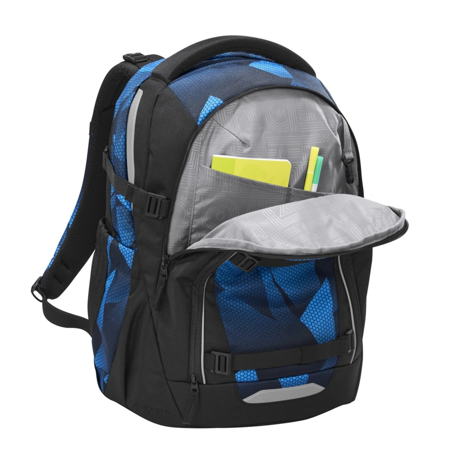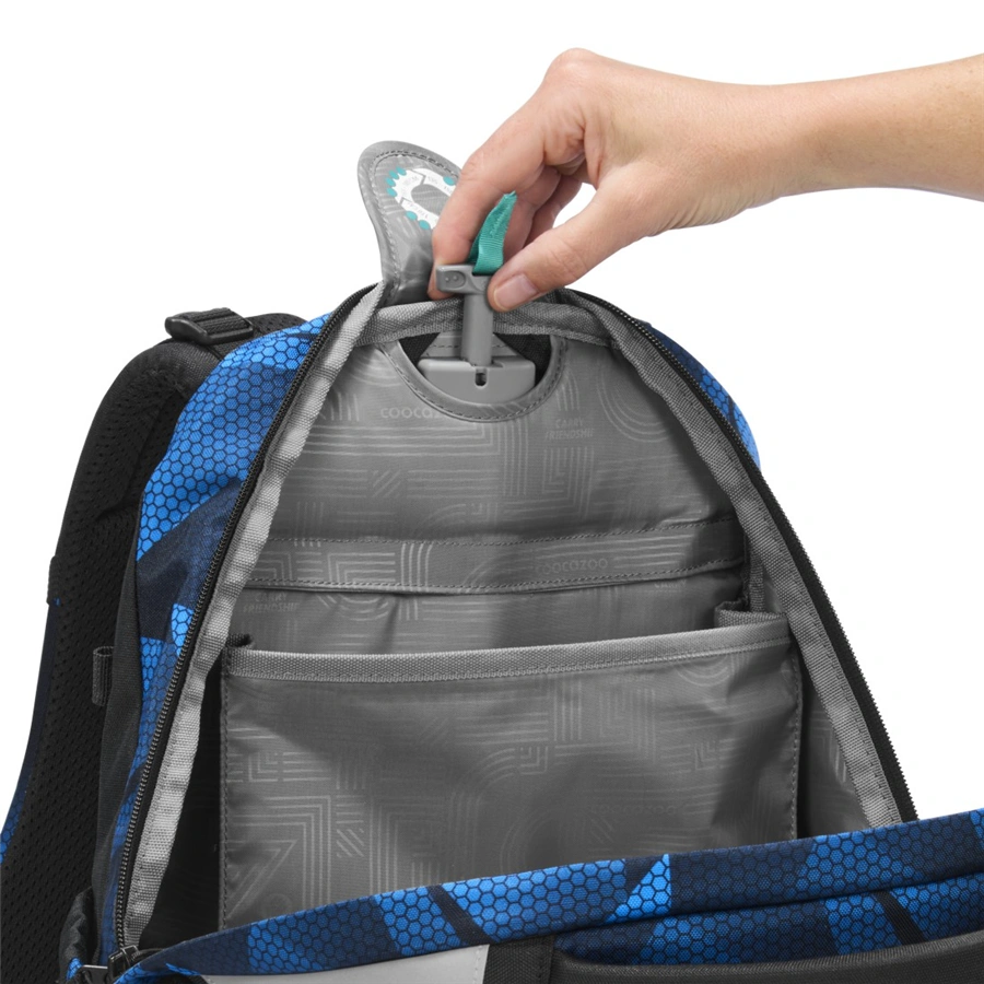 - veľký hlavný priečinok s priehradkou na knihy a odnímateľnou priehradkou, vrecko s organizérom a predné vrecko napr. na desiatovú krabičku