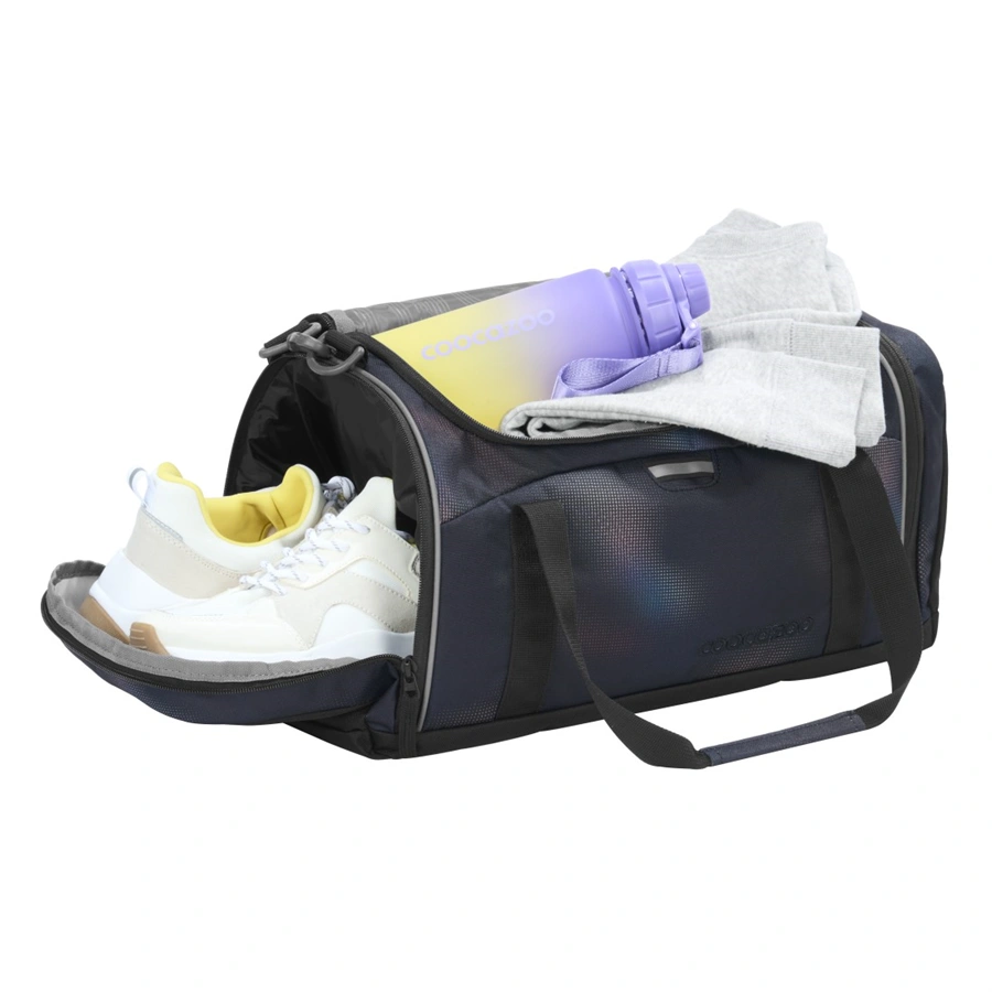 VybavenieHlavný priečinok s oblúkovým zipsom | Odnímateľný, dĺžkovo nastaviteľný popruh na rameno | Ploché bočné vrecko na zips | Priečinok na mokré oblečenie/priečinok na topánky | Pútko na nosenie