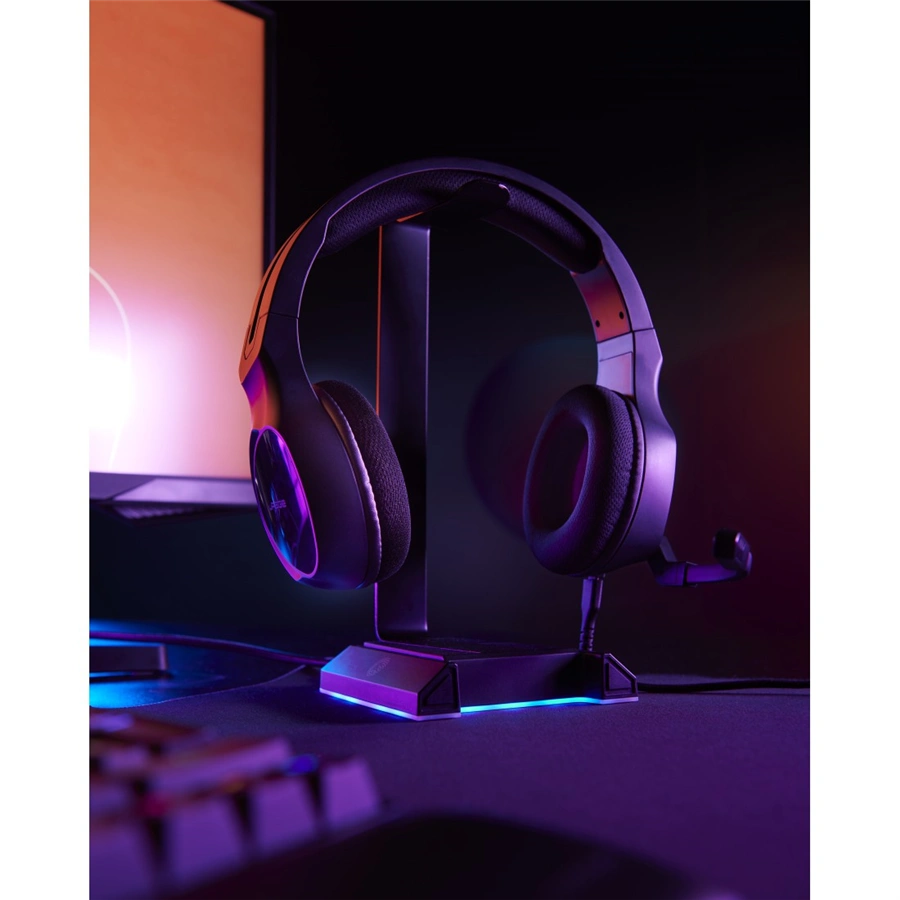 - gamingový stereo headset s uzavretou konštrukciou cez uši (over-ear), čistým zvukom a nastaviteľným hlavovým oblúkom a ramenom mikrofónu
