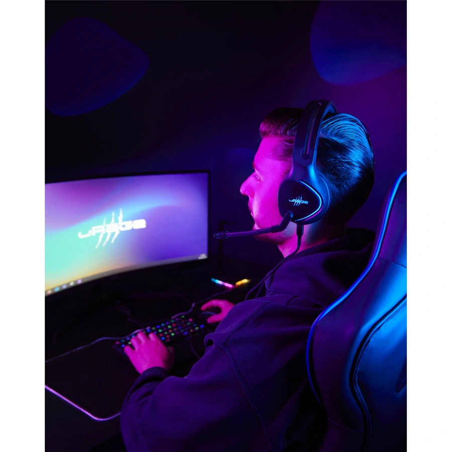 - gamingový stereo headset s uzavretou konštrukciou cez uši over-ear, čistým zvukom a nastaviteľným hlavovým oblúkom a ramenom mikrofónu