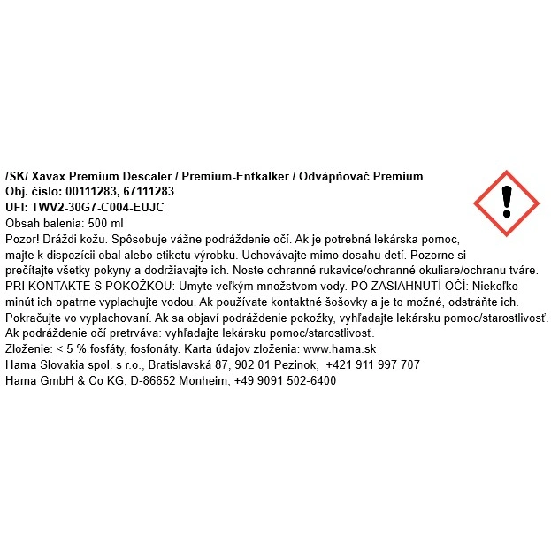 - obsahuje 4 vysokokvalitné prísady, vďaka ktorým je odvápňovač šetrný ku kovovým aj plastovým častiam zariadenia a nepoškodí ich